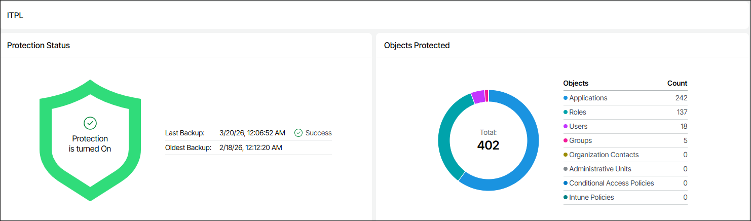 Após a primeira execução já será possível ver o resultado do último backup e também os objetos protegidos.