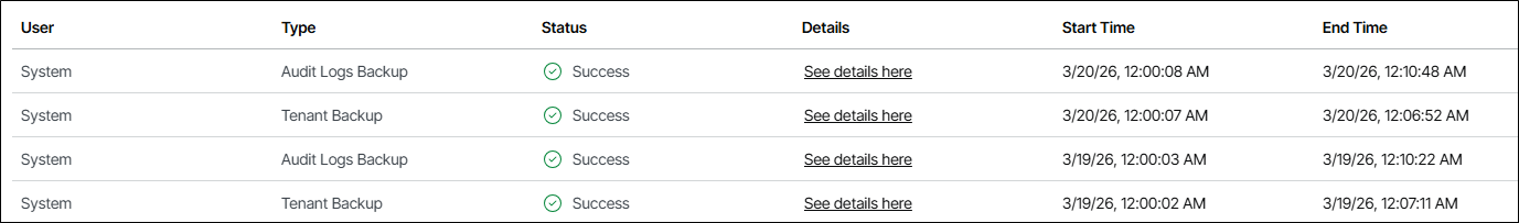 - Veeam Data Cloud executa o backup do Tenant diariamente todos os dias. Não é possível iniciar o backup manualmente;