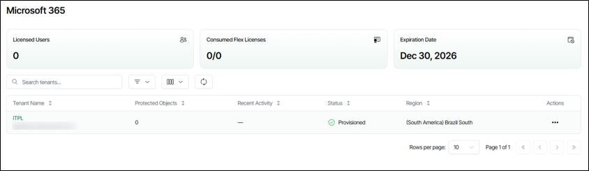 Ao voltar no Dashboard veremos que o Tenant está provisionado e aguardando a criação do backup para então consumir as licenças adquiridas.