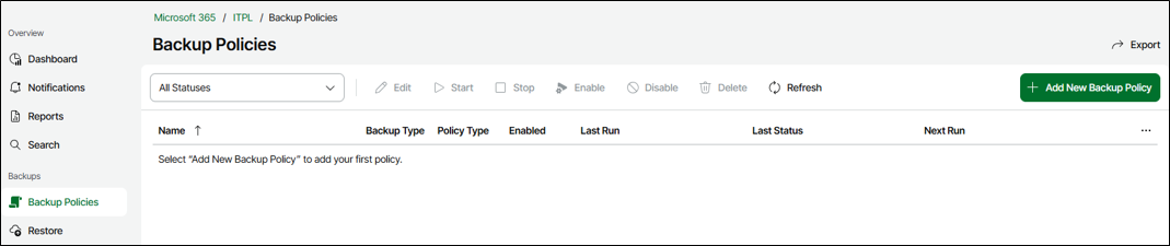 Em Backup Policies, clique em “Add New Backup Policy”:
