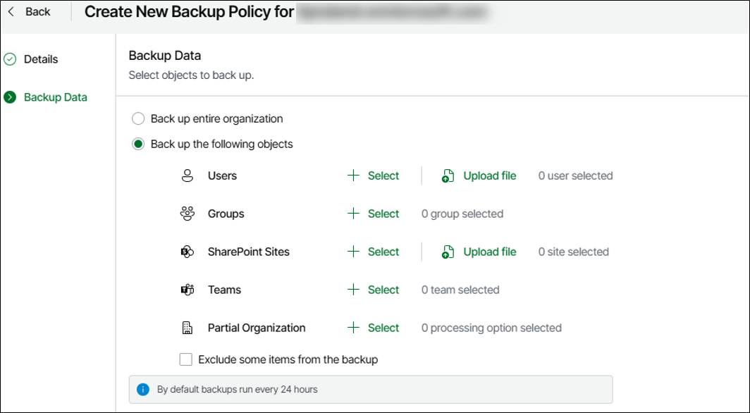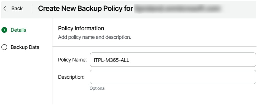 Com o Tenant provisionado já podemos criar a política de backup.