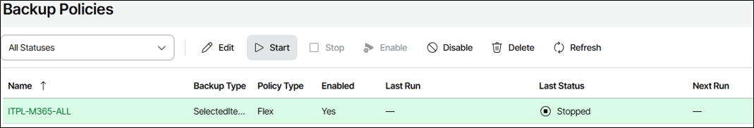 Após a criação podemos iniciar a política manualmente na primeira vez.