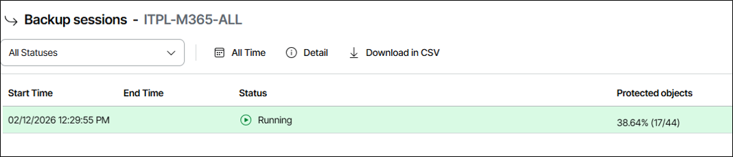 Outra forma de ter uma visão da proteção dos dados é no Dashboard do Veeam Data Cloud. Ao filtrar por Microsoft 365 teremos uma visão de como está a proteção dos dados.
