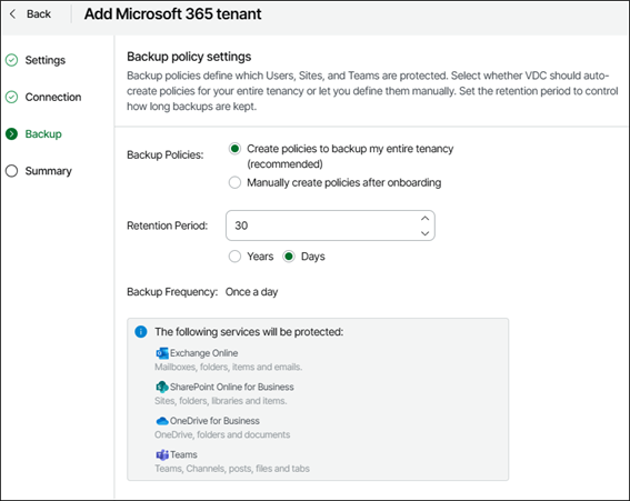 Veja a lista completa de todos os pré-requisitos e limitações aqui: Considerations and Limitations – Veeam Data Cloud User Guide